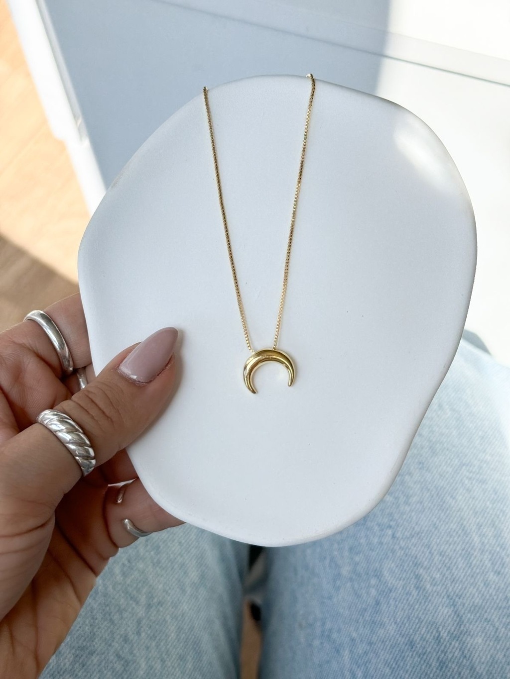 Colar Lua Invertida no Banho de Ouro